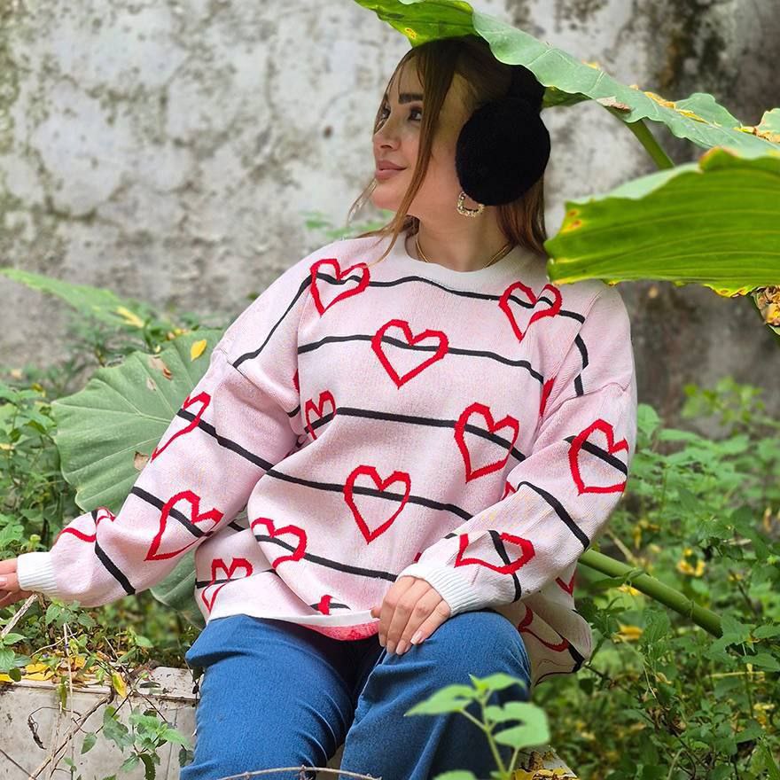 تونیک بافت قلبی – لطیف، شاد و دخترانه برای استایل پاییزی و زمستانی