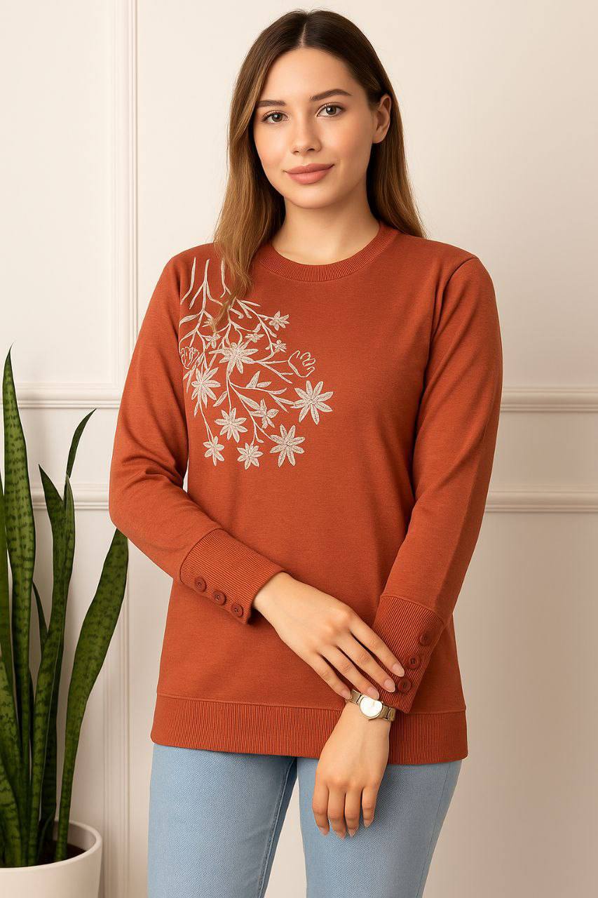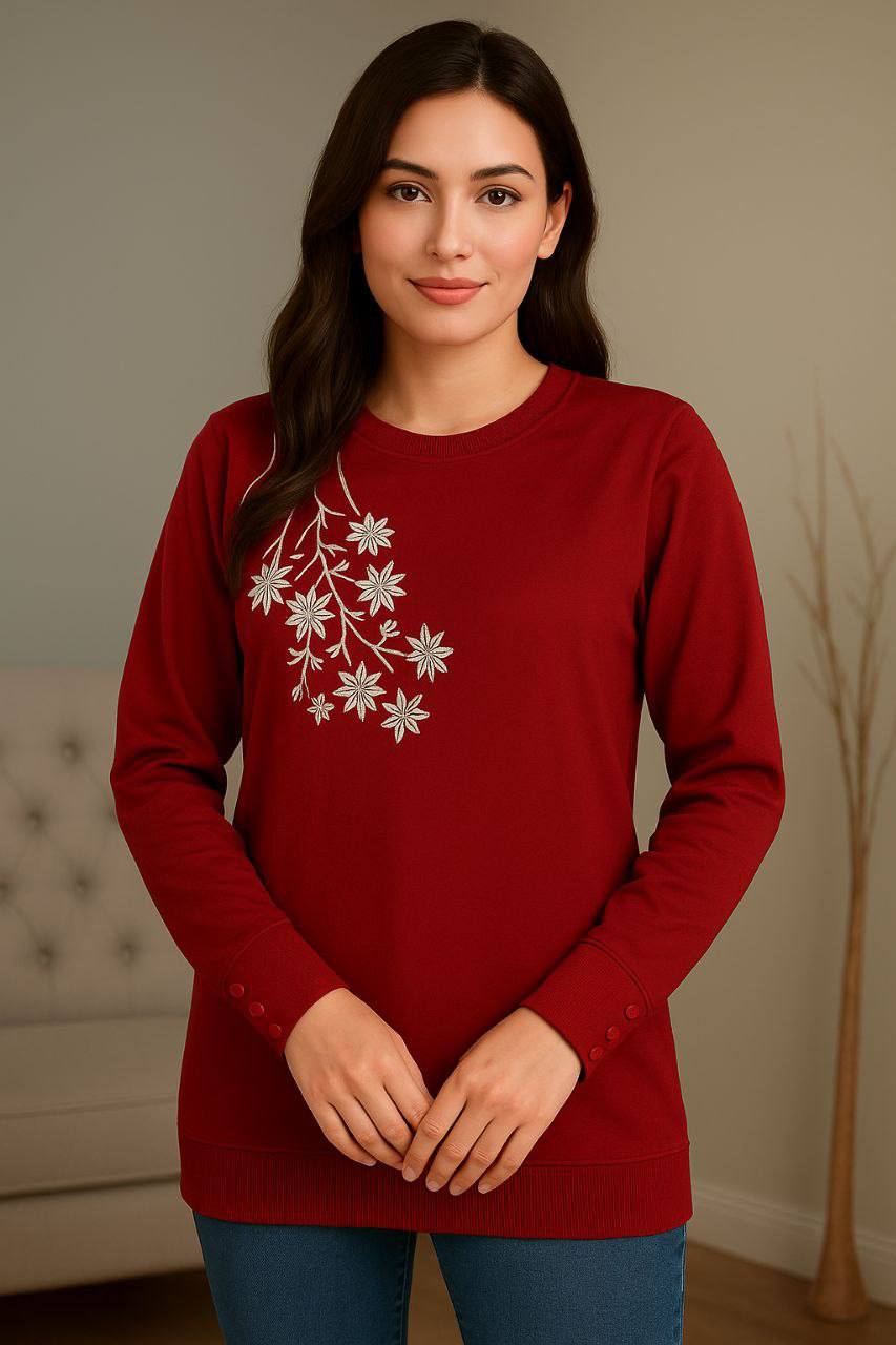 بلوز آستین بلند طرح گل – گرم، نرم و زیبا برای فصلهای سرد