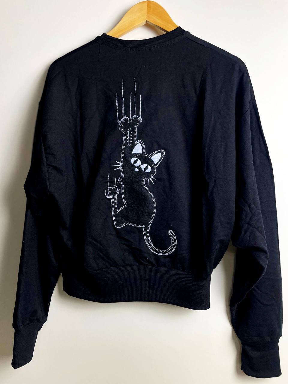 - طراحی خاص با گلدوزی فانتزی گربه در پشت لباس