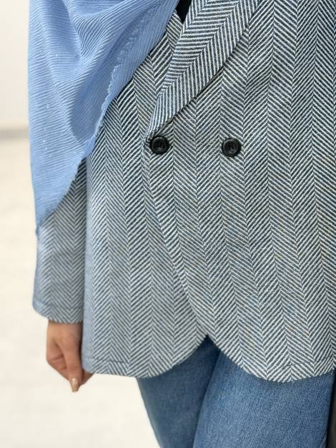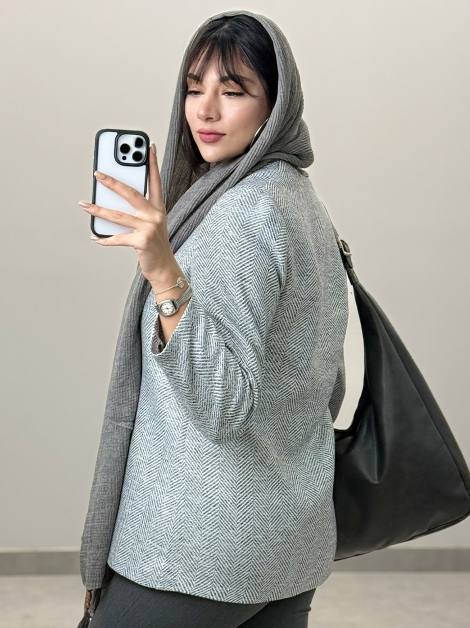 این کت از آن دسته لباسهایی است که هیچوقت از مد نمیافتد. رنگ طوسی خنثی و حرفهای آن باعث میشود بتوانید آن را با رنگهای تیره یا روشن بهراحتی ست کنید. بافت جناغی پارچه جلوهای خاص و ظریف به ظاهر کت داده و باعث میشود در هر استایلی، شیک و خاص به نظر برسید.